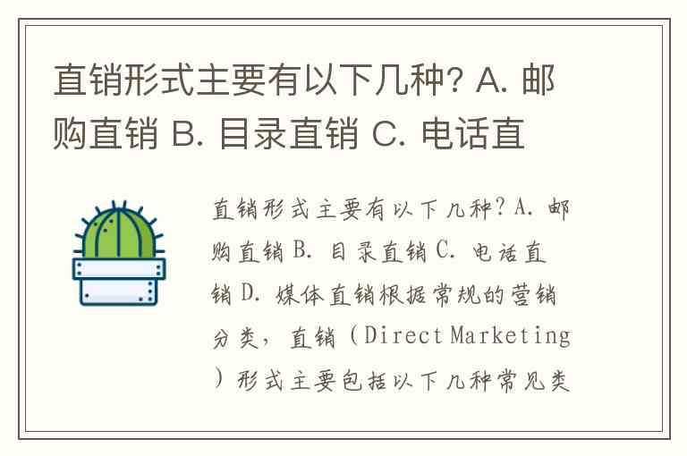 根据常规的营销分类,直销(Direct Marketing)形式主要包括以下几种常见类型: