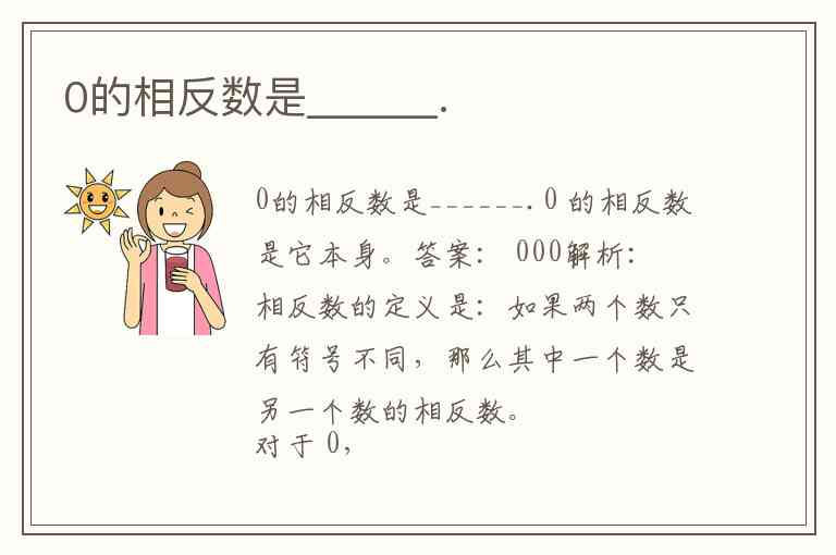 解析:相反数的定义是:如果两个数只有符号不同,那么其中一个数是另一个数的相反数。对于 0,它既不是正数也不是负数,它的相反数仍是 0,因为 0=−00 = -00=−0。