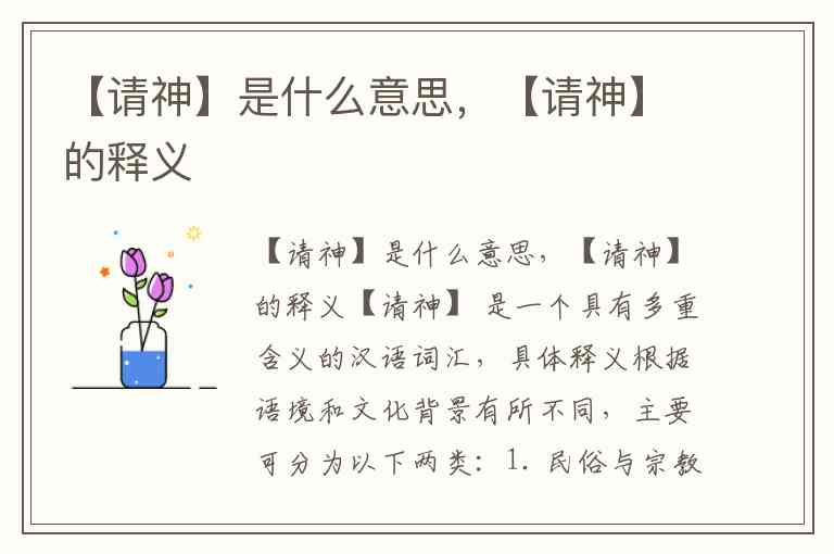【请神】 是一个具有多重含义的汉语词汇,具体释义根据语境和文化背景有所不同,主要可分为以下两类: