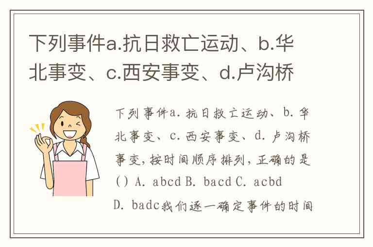 下列事件a.抗日救亡运动、b.华北事变、c.西安事变、d.卢沟桥事变,按时间顺序排列,正确的是( ) A. abcd B. bacd C. acbd D. badc