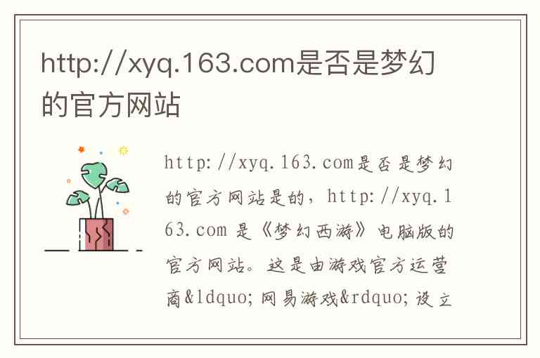 最可靠的方法是注意网站本身包含的官方信息。在 xyq.163.com 上,你可以找到以下证据:
