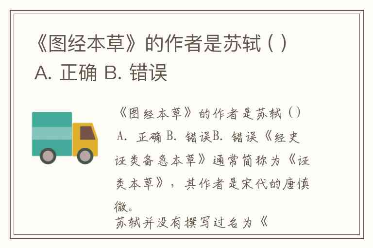 《图经本草》的作者是苏轼 ( ) A. 正确 B. 错误