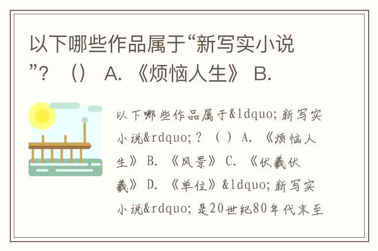 D.《单位》:刘震云的小说,描写机关单位的日常生活与人际关系,是新写实小说的代表作之一。 ✅ 属于