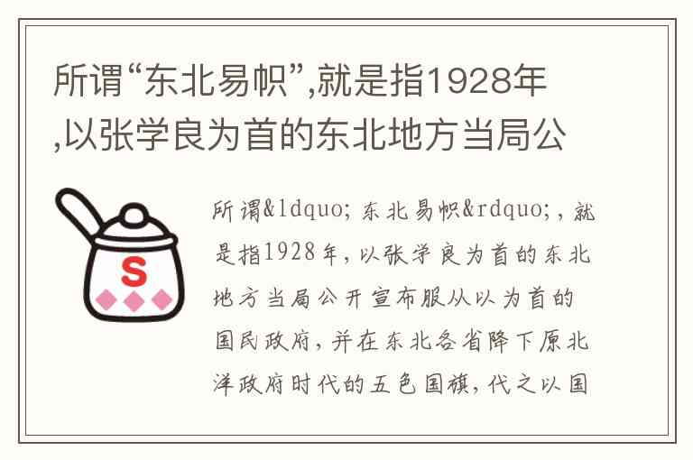 东北易帜发生在 1928 年 12 月 29 日,张学良宣布服从南京国民政府,东三省及热河改悬青天白日满地红旗,使全国在名义上归于一个中央政府,政治上实现了形式上的统一。
