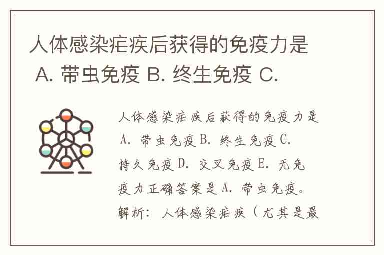 存在免疫力:人体感染后确实会产生一定的保护性免疫(尤其是成人或流行区居民),因此 E. 无免疫力 不正确。