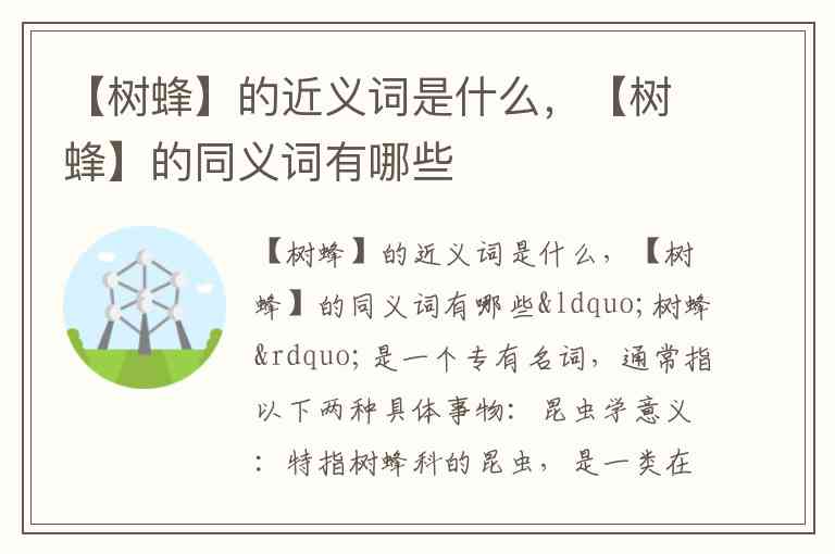 因此,在回答“【树蜂】的近义词是什么”时,最准确的答案是:作为特定名称,它没有直接的同义词,只有相关类别的统称或描述词。