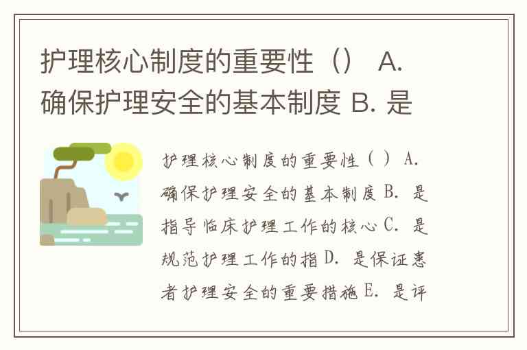 护理核心制度的重要性() A. 确保护理安全的基本制度 B. 是指导临床护理工作的核心 C. 是规范护理工作的指 D. 是保证患者护理安全的重要措施 E. 是评估护理工作质量的依据
