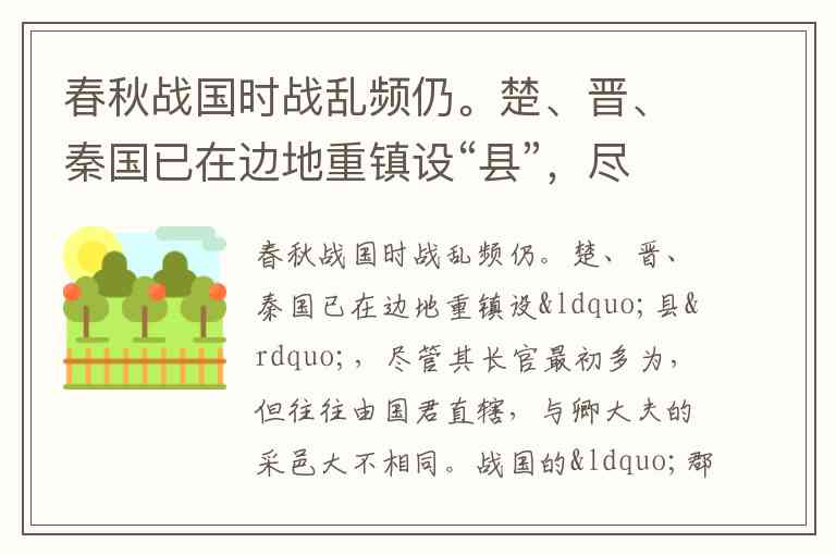 ——县的长官由国君直辖,郡守源于军区长官,确实与军事有关,但材料未明确说明所有郡县长官都“承担军事任务”(尤其战国后期郡县逐渐转为地方行政机构)。