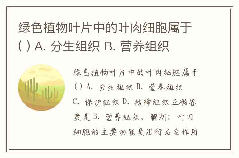 绿色植物叶片中的叶肉细胞属于( ) A. 分生组织 B. 营养组织 C. 保护组织 D. 结缔组织