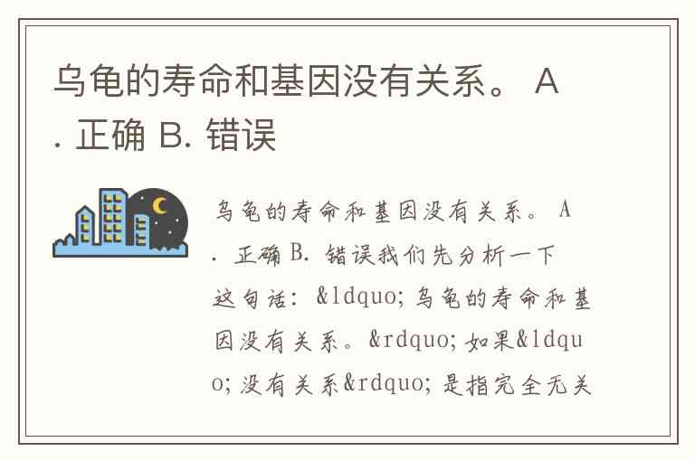 我们先分析一下这句话:“乌龟的寿命和基因没有关系。”