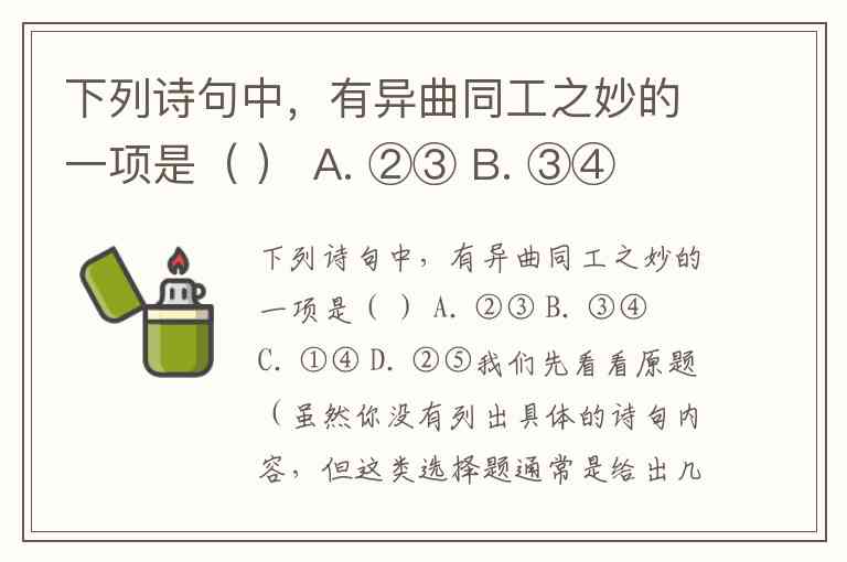 我们先看看原题(虽然你没有列出具体的诗句内容,但这类选择题通常是给出几句诗,要求判断哪两句在手法、情感、意象或哲理上“有异曲同工之妙”)。