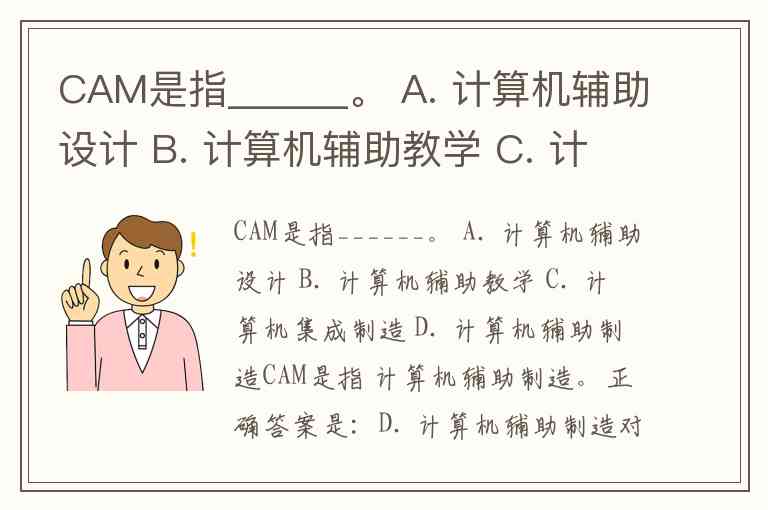 D. 计算机辅助制造 对应 CAM(Computer-Aided Manufacturing)