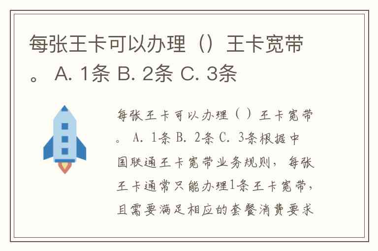 每张王卡可以办理()王卡宽带。 A. 1条 B. 2条 C. 3条