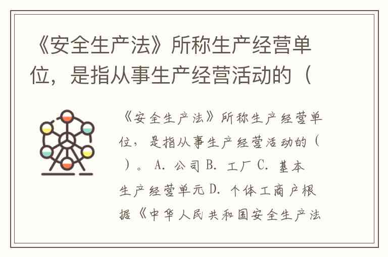 《安全生产法》所称生产经营单位,是指从事生产经营活动的( )。 A. 公司 B. 工厂 C. 基本生产经营单元 D. 个体工商户