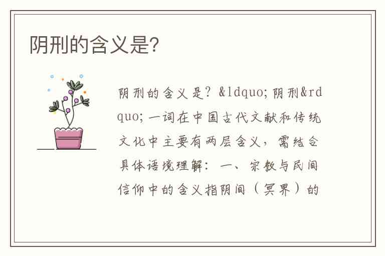 “阴刑”一词在中国古代文献和传统文化中主要有两层含义,需结合具体语境理解: