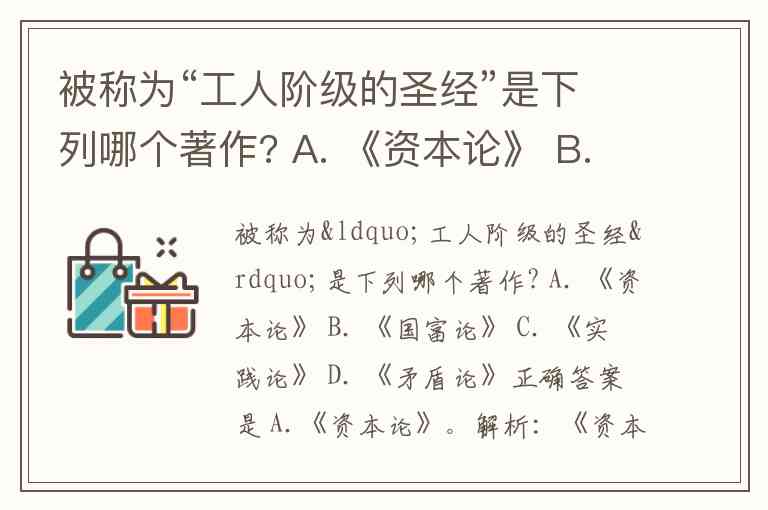 被称为“工人阶级的圣经”是下列哪个著作? A. 《资本论》 B. 《国富论》 C. 《实践论》 D. 《矛盾论》
