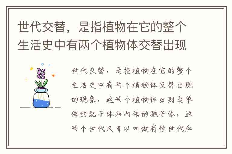 配子体与孢子体在生活史中相互交替,完成植物从有性到无性再到有性的世代循环,这一现象称为 世代交替。
