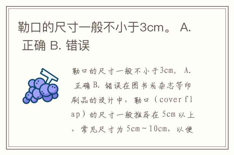 勒口的尺寸一般不小于3cm。 A. 正确 B. 错误