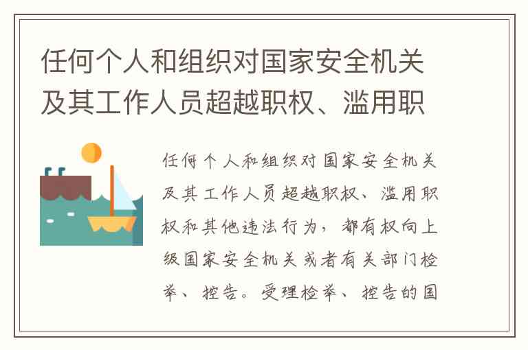 任何个人和组织对国家安全机关及其工作人员超越职权、滥用职权和其他违法行为,都有权向上级国家安全机关或者有关部门检举、控告。受理检举、控告的国家安全机关或者有关部门应当及时查清事实,负责处理,并将处理结果及时告知检举人、控告人。 A. 正确 B. 错误