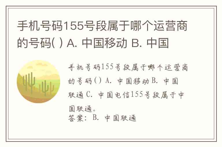 手机号码155号段属于哪个运营商的号码( ) A. 中国移动 B. 中国联通 C. 中国电信