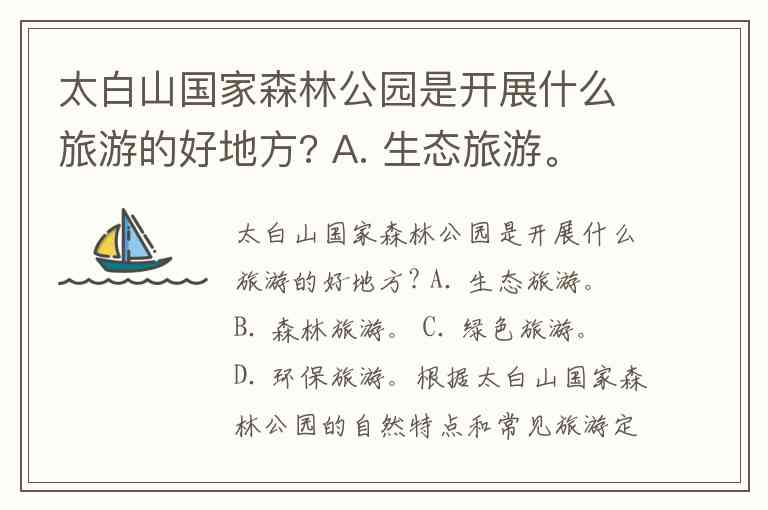 太白山国家森林公园是开展什么旅游的好地方? A. 生态旅游。 B. 森林旅游。 C. 绿色旅游。 D. 环保旅游。