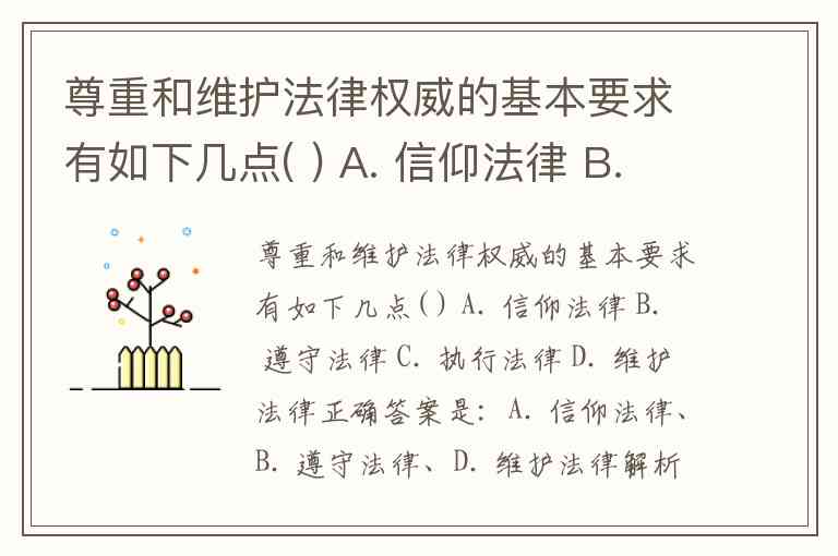 尊重和维护法律权威的基本要求有如下几点( ) A. 信仰法律 B. 遵守法律 C. 执行法律 D. 维护法律