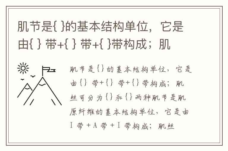 肌节是{ }的基本结构单位,它是由{ } 带+{ } 带+{ }带构成;肌丝可分为{ }和{ }两种