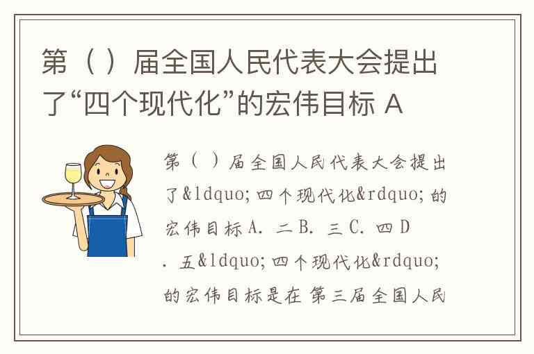 第( )届全国人民代表大会提出了“四个现代化”的宏伟目标 A. 二 B. 三 C. 四 D. 五
