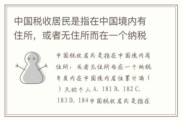 中国税收居民是指在中国境内有住所,或者无住所而在一个纳税年度内在中国境内居住累计满( )天的个人 A. 181 B. 182 C. 183 D. 184