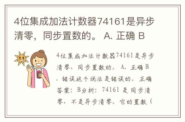 所以,正确的描述应为:74161 是同步清零、同步置数的集成计数器。