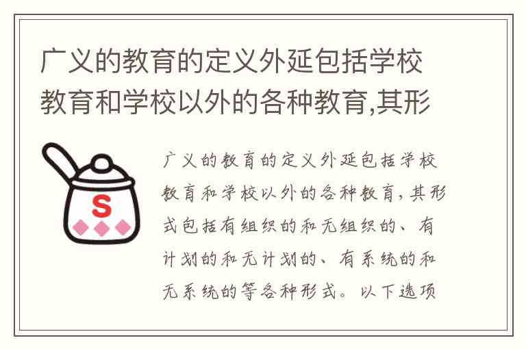广义的教育:外延包括学校教育及学校以外的各种教育。