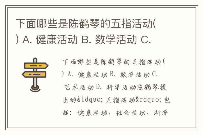 根据选项来看:A. 健康活动 ✅B. 数学活动 ❌(不属于五指活动,数学可归入科学或单独学科,但五指活动中无此项)C. 艺术活动 ✅D. 科学活动 ✅