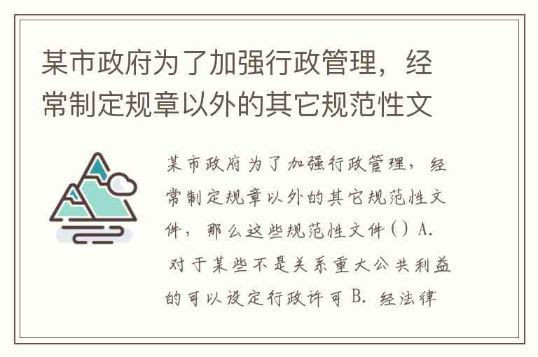 某市政府为了加强行政管理,经常制定规章以外的其它规范性文件,那么这些规范性文件( ) A. 对于某些不是关系重大公共利益的可以设定行政许可 B. 经法律的授权后,可以在授权的范围内设定行政许可 C. 经国务院授权后,可以在授权的范围内设定行政许可 D. 一律不得设定行政许可