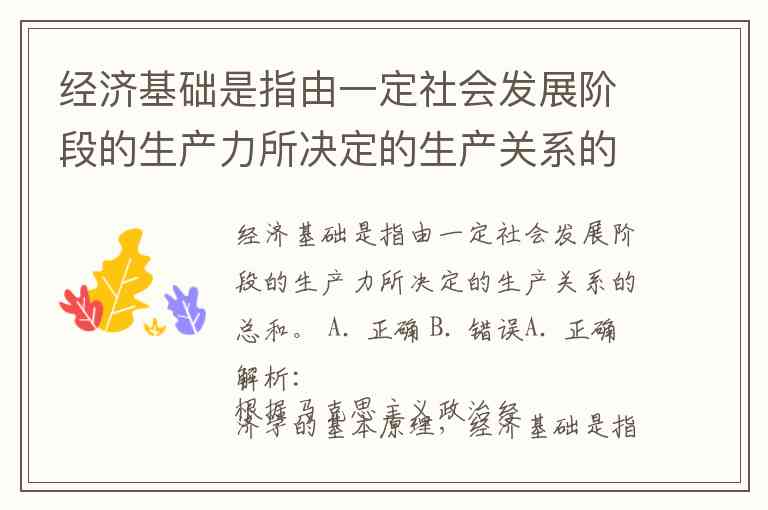 经济基础是指由一定社会发展阶段的生产力所决定的生产关系的总和。 A. 正确 B. 错误