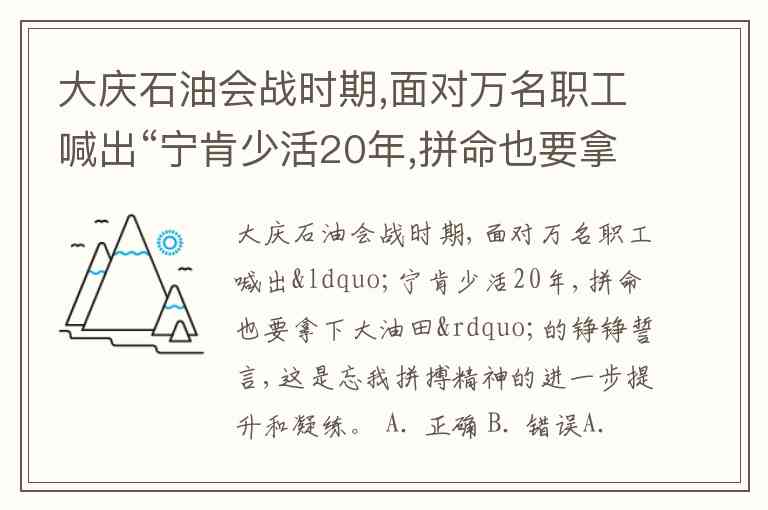 大庆石油会战时期,面对万名职工喊出“宁肯少活20年,拼命也要拿下大油田”的铮铮誓言,这是忘我拼搏精神的进一步提升和凝练。 A. 正确 B. 错误
