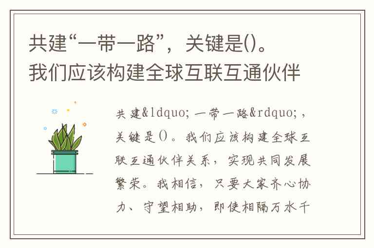 题干的核心句是“我们应该构建全球互联互通伙伴关系,实现共同发展繁荣”,这直接点明了共建“一带一路”的关键在于“互联互通”。虽然“共同发展”“齐心协力”“民心相通”都是共建“一带一路”中的重要理念或目标,但题干强调的是“关键”,而“互联互通”是实现后续目标的基础和核心。因此,D选项最为准确。
