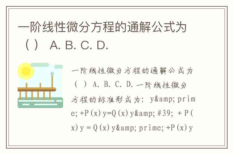 一阶线性微分方程的通解公式为( ) A. B. C. D.