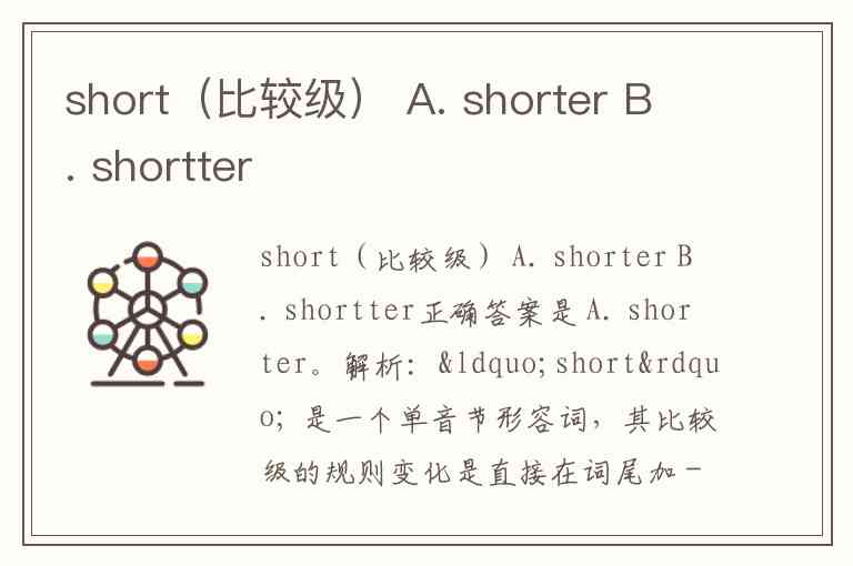 short(比较级) A. shorter B. shortter