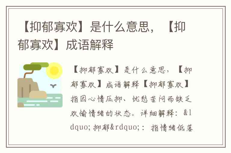 【抑郁寡欢】是什么意思,【抑郁寡欢】成语解释