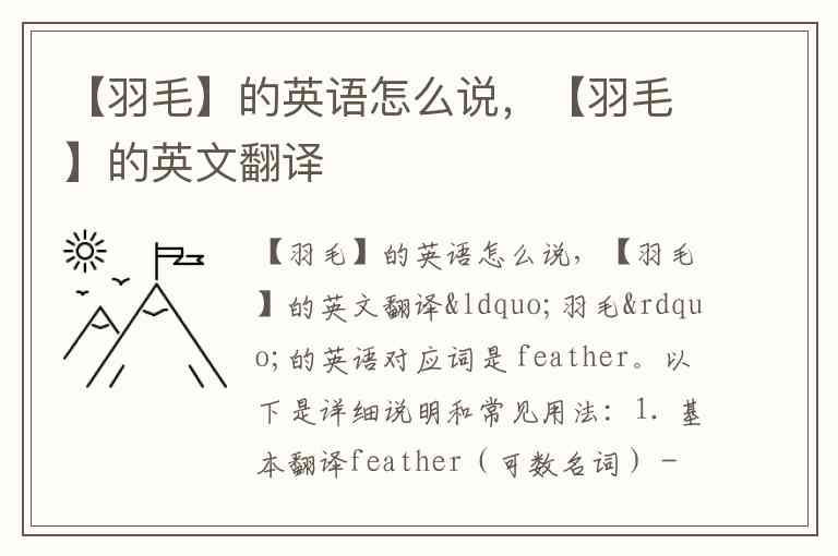 在绝大多数日常和一般语境中,feather 是最准确、最常用的翻译。根据具体指代的是单根羽毛、全身羽毛还是柔软的绒毛,可以选择 feather、plumage 或 down。