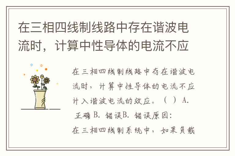 在三相四线制线路中存在谐波电流时,计算中性导体的电流不应计入谐波电流的效应。( ) A. 正确 B. 错误
