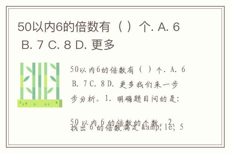 50以内6的倍数有( )个. A. 6 B. 7 C. 8 D. 更多