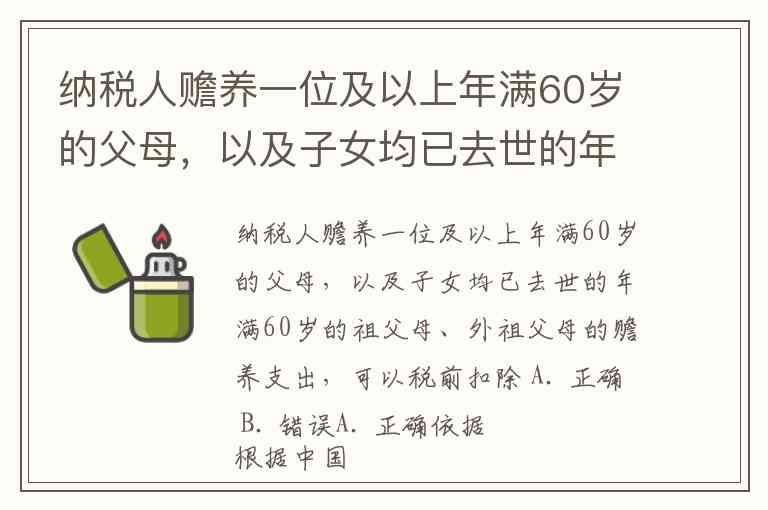 纳税人赡养一位及以上年满60岁的父母,以及子女均已去世的年满60岁的祖父母、外祖父母的赡养支出,可以税前扣除 A. 正确 B. 错误