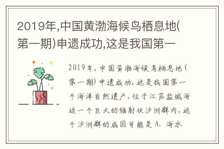2019年,中国黄渤海候鸟栖息地(第一期)申遗成功,这是我国第一个海洋自然遗产,位于江苏盐城海边一个巨大的辐射状沙洲群内,这个沙洲群的成因可能是 A. 海水侵蚀 B. 海水堆积 C. 风力侵蚀 D. 风力堆积