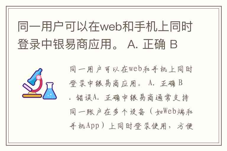 同一用户可以在web和手机上同时登录中银易商应用。 A. 正确 B. 错误