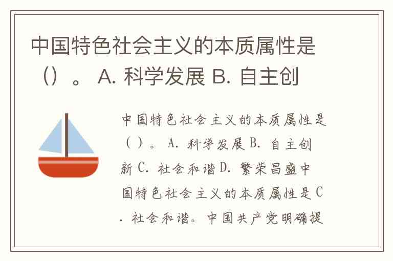 中国特色社会主义的本质属性是()。 A. 科学发展 B. 自主创新 C. 社会和谐 D. 繁荣昌盛