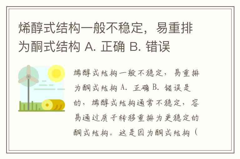 烯醇式结构一般不稳定,易重排为酮式结构 A. 正确 B. 错误