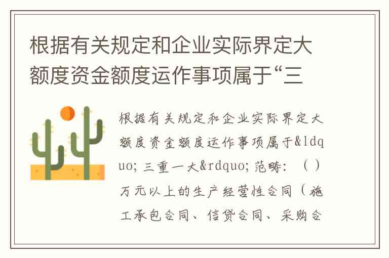 依据常见的国有企业“三重一大”制度相关规定,通常对“大额资金”的额度界定会因企业规模、行业特点有所差异,但参考多数地方国资委和央企的实施标准,常见的划分参考如下: