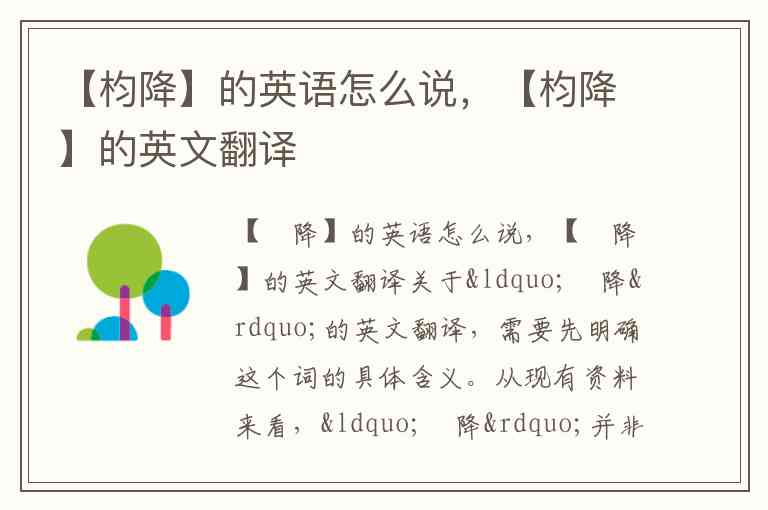 关于“枃降”的英文翻译,需要先明确这个词的具体含义。从现有资料来看,“枃降”并非现代汉语常用词,可能属于古汉语、特定方言或专业术语,其翻译需根据上下文确定: