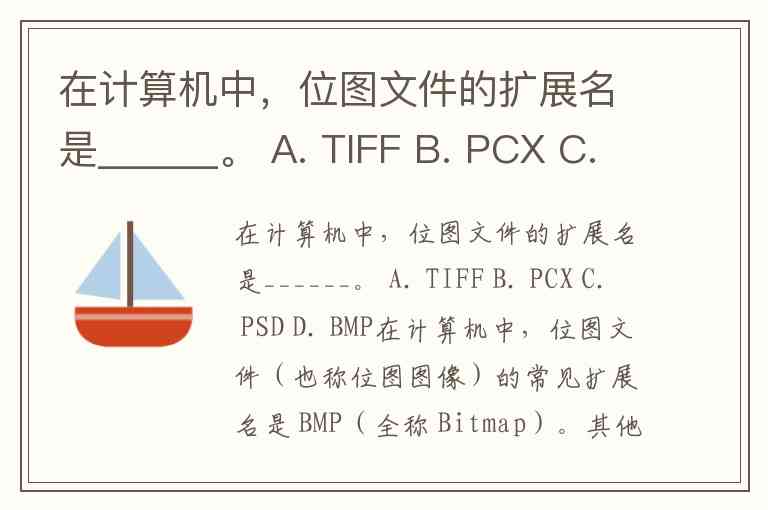 在计算机中,位图文件的扩展名是______。 A. TIFF B. PCX C. PSD D. BMP